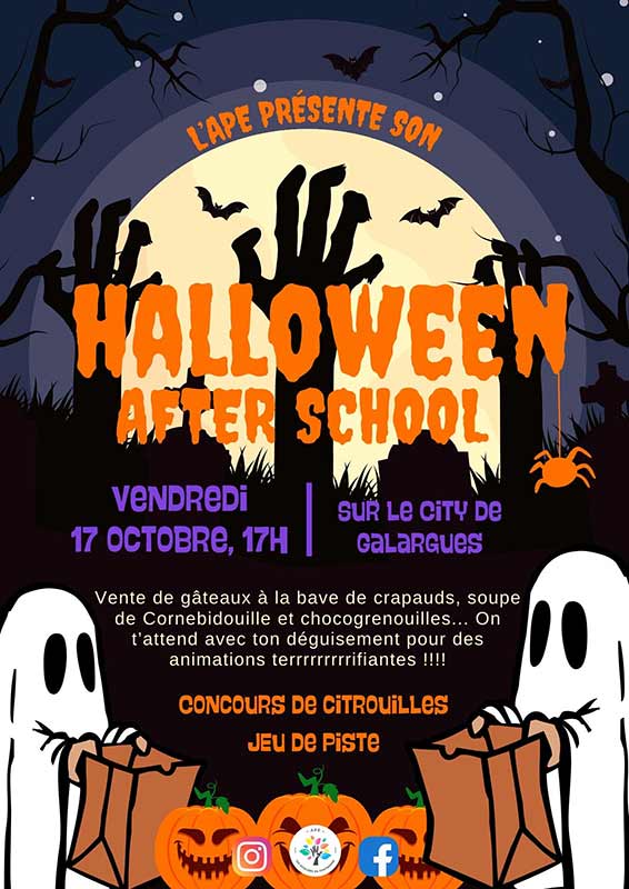 Descriptif : L’APE propose un After school Halloween à la sortie d’école de Galargues : Concours de citrouilles avec un lot à gagner.